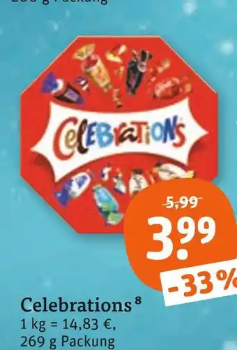 Werfen Sie einen Blick auf die günstigsten Produkte zwischen all den Angeboten! Wenn Sie gerne wissen möchten, ob tegut die höchsten Rabatte für Celebrations anbietet, vergleichen Sie die Angebote ganz einfach auf der Startseite mit den anderen Geschäften.