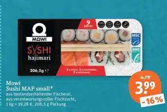 Den Preis von dem Mowi sushi map small finden Sie auch oben auf der Website, zusammen mit dem Datum, ab wann das Angebot erhältlich ist. Sie können die Preise auch im aktuellen Tegut Prospekt nachhalten oder auf der tegut Website nachschauen. Durch die Angebote können Sie sicher sein, die tegut Produkte zum absoluten Bestpreis zu ergattern.