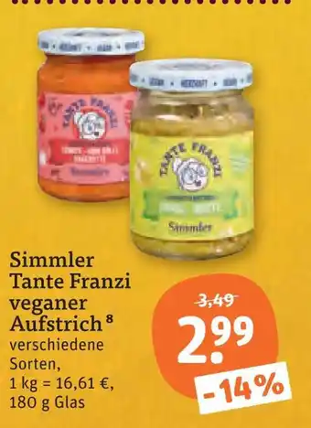 Jetzt im Angebot bei tegut: Simmler tante franzi veganer aufstrich ✅ Aktion gültig vom 23-02 bis 28-02.