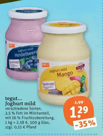 Jetzt im Angebot bei tegut: Tegut... joghurt mild ✅ Aktion gültig vom 20-04 bis 25-04.