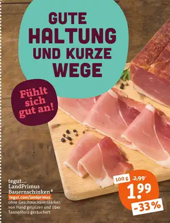 Jetzt im Angebot bei tegut: Tegut... landprimus bauernschinken ✅ Aktion gültig vom 29-12 bis 3-01.