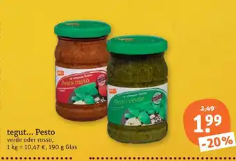 Den Preis von dem Tegut... pesto verde finden Sie auch oben auf der Website, zusammen mit dem Datum, ab wann das Angebot erhältlich ist. Sie können die Preise auch im aktuellen Tegut Prospekt nachhalten oder auf der tegut Website nachschauen. Durch die Angebote können Sie sicher sein, die tegut Produkte zum absoluten Bestpreis zu ergattern.