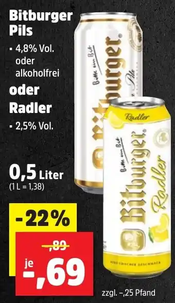 Jetzt im Angebot bei Thomas Philipps: Bitburger Pils oder Radler ✅ Aktion gültig vom 2-03 bis 7-03.