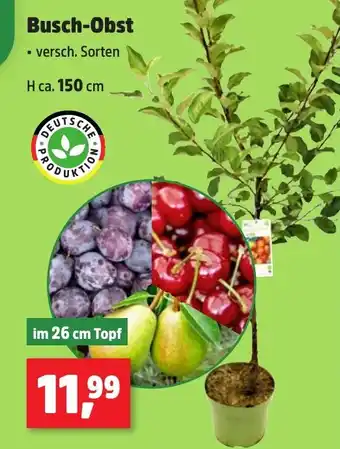 Das Angebot ist in verschiedenen Geschäften erhältlich. Schauen Sie sich alle Produkte an, um das günstigste Busch-Obst zu ergattern. Wenn Sie gerne nachschauen möchten, ob der Artikel woanders noch günstiger ist, werfen Sie einen Blick auf die Kategorie 'Garten und Tiere'. Möglicherweise sind diese Angebote auch interessant für Sie: Obst-Büsche, Freshona Bio Obst & GLOBUS Obst-Herz.
