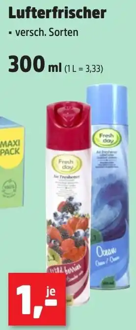 Das Angebot ist in verschiedenen Geschäften erhältlich. Schauen Sie sich alle Produkte an, um das günstigste Lufterfrischer zu ergattern. Wenn Sie gerne nachschauen möchten, ob der Artikel woanders noch günstiger ist, werfen Sie einen Blick auf die Kategorie 'Garten und Tiere'. Möglicherweise sind diese Angebote auch interessant für Sie: Fresh Day Lufterfrischer, Active Air LED- Lufterfrischer & Angebot 3.