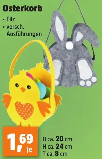 Das Angebot ist in verschiedenen Geschäften erhältlich. Schauen Sie sich alle Produkte an, um das günstigste Osterkorb zu ergattern. Wenn Sie gerne nachschauen möchten, ob der Artikel woanders noch günstiger ist, werfen Sie einen Blick auf die Kategorie 'Garten und Tiere'. Möglicherweise sind diese Angebote auch interessant für Sie: FILZ- OSTERKORB, Osterkörbchen & HARIBO Osterkörbchen.