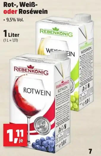 Rot-, Weiß- oder Roséwein 1 l