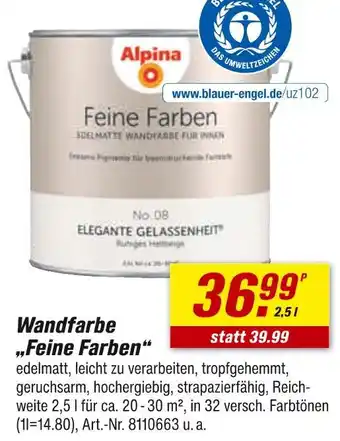 Jetzt im Angebot bei toom Baumarkt: Alpina feine farben ✅ Aktion gültig vom 10-01 bis 16-01.