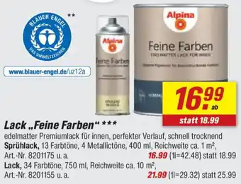 Jetzt im Angebot bei toom Baumarkt: Alpina Lack ,,Feine Farben" ✅ Aktion gültig vom 18-04 bis 24-04.
