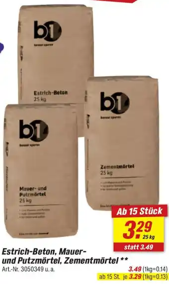 b1 Estrich-Beton, Mauer- und Putzmörtel, Zementmörtel 25 kg