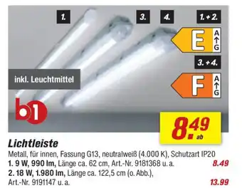 Diese Woche ist b1 Lichtleiste bei toom Baumarkt reduziert erhältlich. Hier finden Sie alle Informationen zu Preisen, Aktionsdetails und Laufzeit. Prüfen Sie weitere b1 Lichtleiste Aktionen, um sicherzugehen, dass Sie den besten Preis erhalten. Die b1 Lichtleiste Aktion gilt in Kalenderwoche 07. Nach Ablauf zeigen wir Ihnen vergleichbare Alternativen. Abonnieren Sie die Kategorie, um beim nächsten Mal direkt informiert zu sein, wenn b1 Lichtleiste wieder reduziert ist.Häufig gestellte Fragen über b1 Lichtleiste
