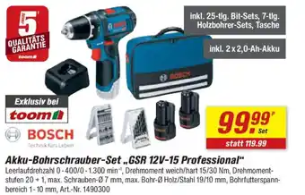 BOSCH Akku-Bohrschrauber-Set ,,GSR 12V-15 Professional" Angebote und Aktionen bei toom Baumarkt