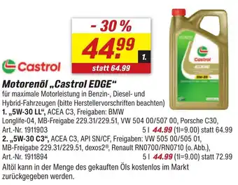 Castrol Motorenöl ,,Castrol EDGE" Angebote und Online Aktionen direkt aus dem aktuellen toom Baumarkt Angebot