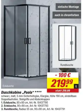 Duschkabine ,,Paola"-Rabatt bei toom Baumarkt