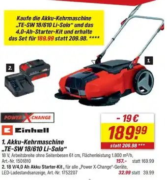 Einhell 1. Akku-Kehrmaschine ,,TE-SW 18/610 Li-Solo" Angebote und Aktionen bei toom Baumarkt