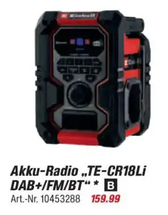 Jetzt im Angebot bei toom Baumarkt: Einhell Akku-Radio „TE-CR18Li DAB+/FM/BT" ✅ Aktion gültig vom 24-01 bis 30-01.