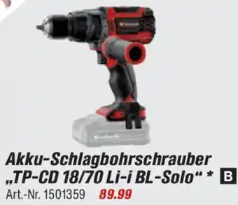 Einhell Akku-Schlagbohrschrauber ,,TP-CD 18/70 Li-i BL-Solo"-Angebot bei toom Baumarkt