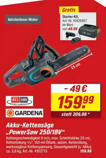 GARDENA Akku-Kettensäge ..PowerSaw 250/18V" Aktion bei toom Baumarkt