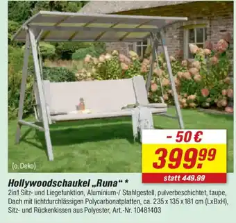 Jetzt im Angebot bei toom Baumarkt: Hollywoodschaukel ,,Runa" ✅ Aktion gültig vom 18-04 bis 24-04.
