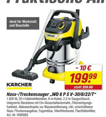Jetzt im Angebot bei toom Baumarkt: Kärcher nass-/trockensauger wd 6 p s v-30/6/22/t ✅ Aktion gültig vom 21-02 bis 27-02.