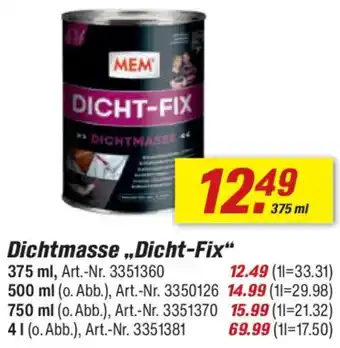 MEM Dichtmasse ,,Dicht-Fix"-Angebot bei toom Baumarkt