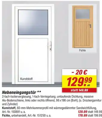 Jetzt im Angebot bei toom Baumarkt: Nebeneingangstür ✅ Aktion gültig vom 28-02 bis 6-03.