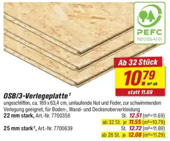 OSB/3-Verlegeplatte ist jetzt im Angebot bei toom Baumarkt, gültig vom 07-02-2026 bis 13-02-2026. Besuchen Sie die Website von toom Baumarkt oder kaufen Sie OSB/3-Verlegeplatte direkt im Geschäft. Auf Prospektangebote.de finden Sie immer die besten aktuellen Aktionen. Vergleichen Sie OSB/3-Verlegeplatte mit anderen Angeboten und prüfen Sie, ob sich ein Kauf jetzt lohnt. Behalten Sie kommende Aktionen im Blick, denn manche Produkte sind nur nächste Woche oder nur vor Ort verfügbar.Häufig gestellte Fragen über OSB/3-Verlegeplatte