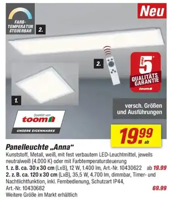 Panelleuchte "Anna"-Rabatt bei toom Baumarkt