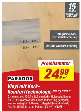 PARADOR Vinyl mit Kork- Komforttechnologie Aktion bei toom Baumarkt