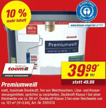 Jetzt im Angebot bei toom Baumarkt: Premiumweiß ✅ Aktion gültig vom 28-02 bis 6-03.