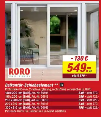 RORO Balkontür-Schiebeelement Angebote und Aktionen bei toom Baumarkt