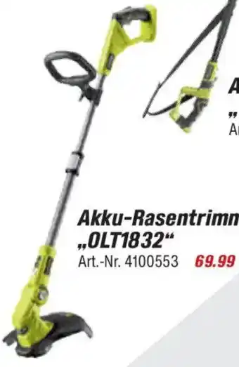 Jetzt im Angebot bei toom Baumarkt: RYOBI Akku-Rasentrimmer „OLT1832" ✅ Aktion gültig vom 28-02 bis 6-03.