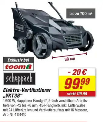 scheppach Elektro-Vertikutierer „VKT38"-Rabatt bei toom Baumarkt