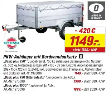 STEMA PKW-Anhänger mit Bordwandaufsatz Aktion bei toom Baumarkt