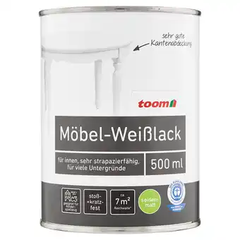 Jetzt im Angebot bei toom Baumarkt: toom Möbel-Weißlack reinweiß seidenmatt 500 ml ✅ Aktion gültig vom 28-12 bis 3-01.