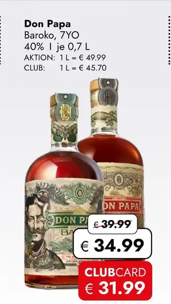 Den Preis von dem Don papa baroko, 7yo finden Sie auch oben auf der Website, zusammen mit dem Datum, ab wann das Angebot erhältlich ist. Sie können die Preise auch im aktuellen Travel Free Prospekt nachhalten oder auf der Travel Free Website nachschauen. Durch die Angebote können Sie sicher sein, die Travel Free Produkte zum absoluten Bestpreis zu ergattern.