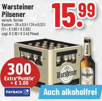 Das Angebot ist in verschiedenen Geschäften erhältlich. Schauen Sie sich alle Produkte an, um das günstigste Warsteiner Pilsener zu ergattern. Wenn Sie gerne nachschauen möchten, ob der Artikel woanders noch günstiger ist, werfen Sie einen Blick auf die Kategorie 'Getränkehandel'. Möglicherweise sind diese Angebote auch interessant für Sie: Warsteiner Pilsener, Warsteiner Pilsener & WARSTEINER PILSENER.