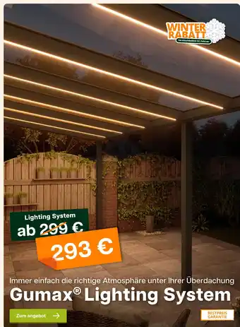 Gumax lighting system ist jetzt im Angebot bei Tuinmaximaal, gültig vom 12-02-2026 bis 22-02-2026. Besuchen Sie die Website von Tuinmaximaal oder kaufen Sie Gumax lighting system direkt im Geschäft. Auf Prospektangebote.de finden Sie immer die besten aktuellen Aktionen. Vergleichen Sie Gumax lighting system mit anderen Angeboten und prüfen Sie, ob sich ein Kauf jetzt lohnt. Behalten Sie kommende Aktionen im Blick, denn manche Produkte sind nur nächste Woche oder nur vor Ort verfügbar.Häufig gestellte Fragen über Gumax lighting system