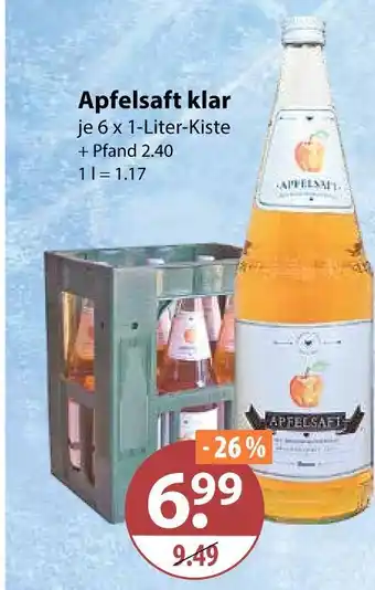 Jetzt im Angebot bei V Markt: Apfelsaft klar ✅ Aktion gültig vom 19-02 bis 25-02.