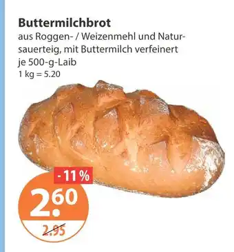 Jetzt im Angebot bei V Markt: Buttermilchbrot ✅ Aktion gültig vom 12-02 bis 18-02.