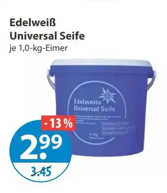 Jetzt im Angebot bei V Markt: Edelweiß universal seife ✅ Aktion gültig vom 5-03 bis 11-03.