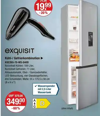 exquisit Kühl-/Gefrierkombination KGC265-70-WS-040D-Rabatt bei V Markt