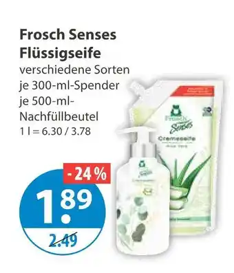 Jetzt im Angebot bei V Markt: Frosch senses flüssigseife ✅ Aktion gültig vom 23-04 bis 29-04.