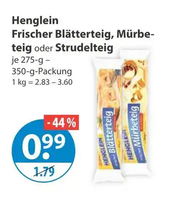 Jetzt im Angebot bei V Markt: Henglein frischer blätterteig/mürbeteig/strudelteig ✅ Aktion gültig vom 23-04 bis 29-04.