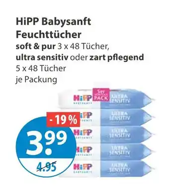 Jetzt im Angebot bei V Markt: Hipp babysanft feuchttücher soft & pur ✅ Aktion gültig vom 8-01 bis 14-01.