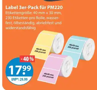 Jetzt im Angebot bei V Markt: Label 3er-pack für pm220 ✅ Aktion gültig vom 15-01 bis 21-01.