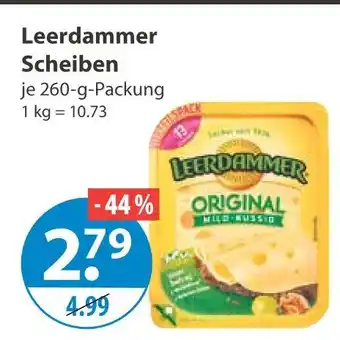 Den Preis von dem Leerdammer scheiben finden Sie auch oben auf der Website, zusammen mit dem Datum, ab wann das Angebot erhältlich ist. Sie können die Preise auch im aktuellen V Markt Prospekt nachhalten oder auf der V Markt Website nachschauen. Durch die Angebote können Sie sicher sein, die V Markt Produkte zum absoluten Bestpreis zu ergattern.