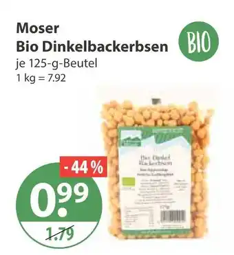 Jetzt im Angebot bei V Markt: Moser bio dinkelbackerbsen ✅ Aktion gültig vom 29-01 bis 4-02.