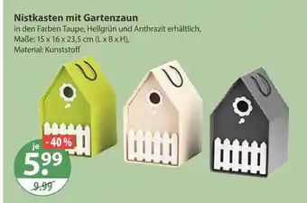 Jetzt im Angebot bei V Markt: Nistkasten mit gartenzaun ✅ Aktion gültig vom 19-02 bis 25-02.