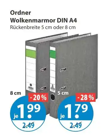 Jetzt im Angebot bei V Markt: Ordner wolkenmarmor din a4 ✅ Aktion gültig vom 8-01 bis 14-01.